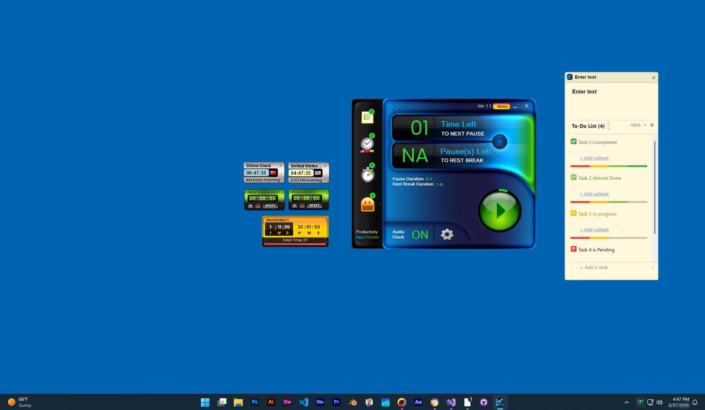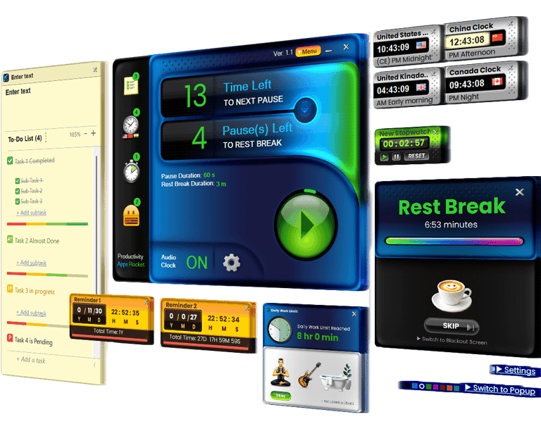 Productivity Tools: Notes, To-Do Lists, World Clocks, Stopwatch, Reminder, Countdown, & more. Designed to keep you focused, productive while helping in preventive burnout.