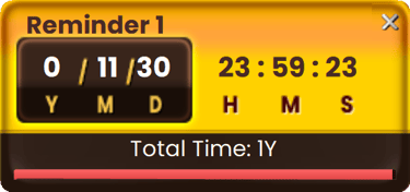 See the progress to a particular events, years, month, days, hours, & minutes remaining. A great way to see countdown to particular event, project timeline, and long term plan.